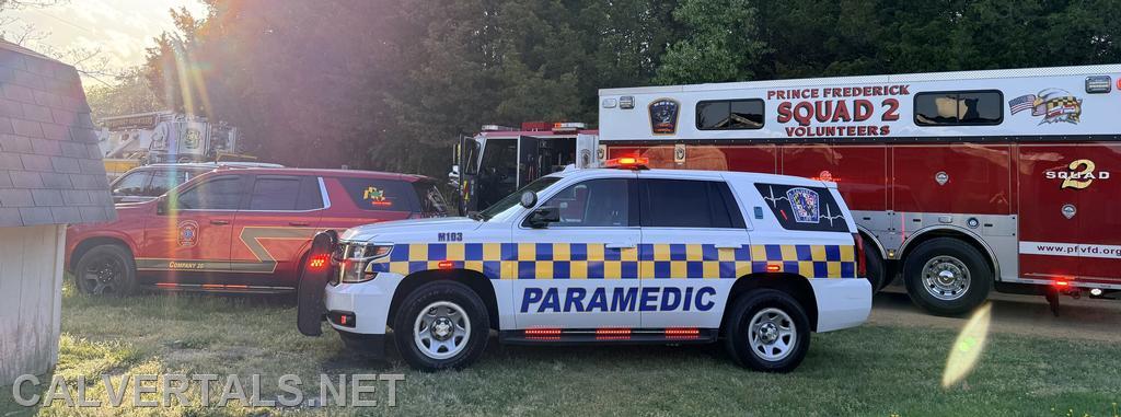 On the evening of Thursday, April 23, CALS units (M103, Farr) responded to support fire department crews at a house fire in the Cove Point Beach neighborhood. While en route, the call was upgraded to a working fire, prompting the response of units from more than seven area departments. CALS medics assisted with rehabilitation efforts and provided both operational and medical support throughout the incident, which involved over 50 firefighters.