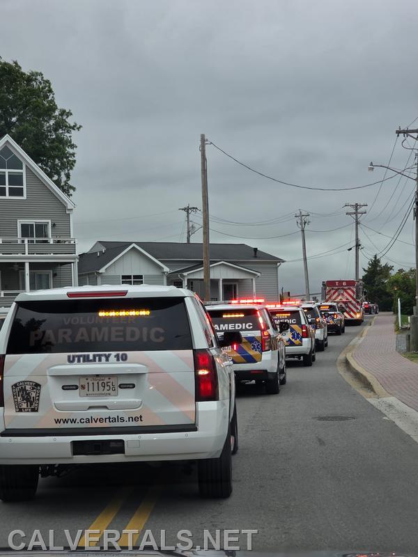 Calvert ALS was well represented at the parade, bringing six units to the event. Attending units included Car 10 led by Lt. Dickson, Medic 101 staffed by Member Koranda, Medic 103 with Captain Farr, Medic 104 operated by PMIC Stockton and Paramedic Mosher, Utility 10 with PMIC Fleming, and Utility 10A driven by Deputy Chief LaVigne and EMT Radcliff.